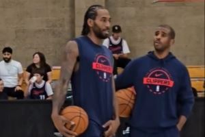 聊啥呢?船记晒视频:保罗和莱昂纳德训练中交流 表情都很认真